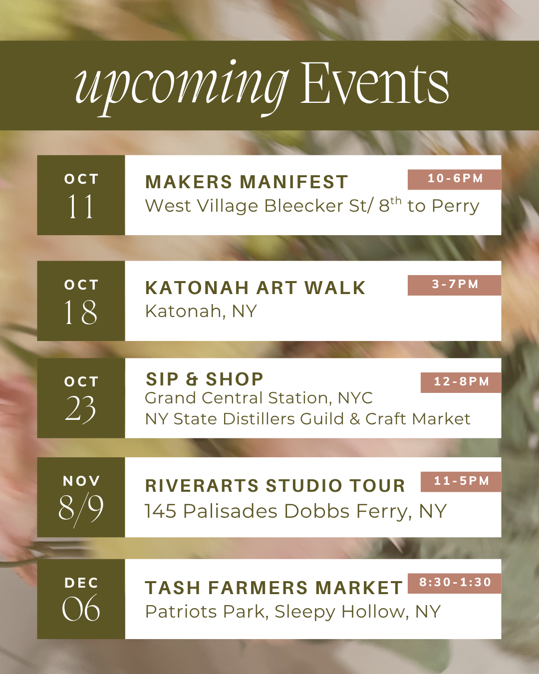Hudson Ceramics is based in Hastings on Hudson, NY. Community markets and pop up events are an important part of our growing business. We love meeting new customers & friends.