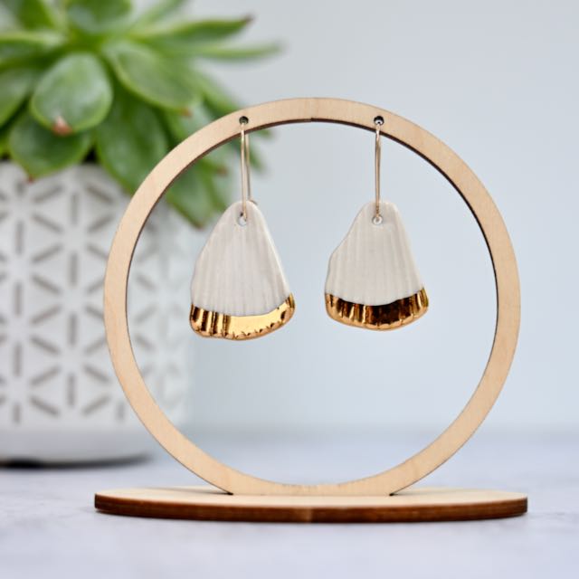 Handmade from fine white porcelain and accented with 24k gold lustre, these elegant earrings are inspired by the sea. Light as a feather and comfortable to wear. Ear wires are gold filled, nickel and lead free. Each piece is carefully sculpted by hand, glazed and fired to achieve it's unique beauty. No two pieces are the same which means that they will be just as unique as you!